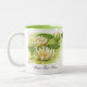"Water Lily" Mug. Beautiful cream and yellow water lilies in a green pond. Personalise by adding your own text. Customise text, font, and font colour. Also choose your mug style, size, and colour.