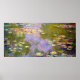 Monet's ambition of documenting the French countryside led him to adopt a method of painting the same scene many times in order to capture the changing of light and the passing of the seasons. From 1883, Monet lived in Giverny, where he purchased a house and property and began a vast landscaping project which included lily ponds that would become the subjects of his best-known works. He began painting the water lilies in 1899, first in vertical views with a Japanese bridge as a central feature and later in the series of large-scale paintings that was to occupy him continuously for the next 20 years of his life. Quote:Wikipedia