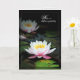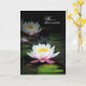 Water lilies with lily pads in pond and black frame reflection for sympathy