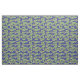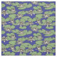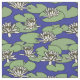 Water lily textile pattern with white lilies and leaves on a blue background.
