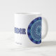 This water themed mandala represents the element with layers of waves, bubbles, and droplets in shades of blue and aqua. This mug is available in jumbo, espresso, and bone china sizes and styles.