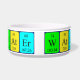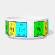 Water spelled out as W At Er (Tungsten Astatine Erbium) on a pet bowl for the scientist in your best friend.
