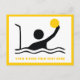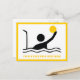 Water polo player black silhouette postcard that features a minimalist pictogram icon of a black silhouette of a water ball player holding his ball in front of the goal and your text on white background with yellow border.  The perfect gift for the water polo athlete or lover in your life. See lots of designs at our Sports Gifts store.
