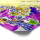 An abstract design of the riverside with sunlight reflecting on the water and purple foliage.