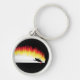 A keychain for the slalom water ski enthusiast, It features an image of a slalom water skier kicking up a wall of flames instead of water,