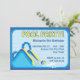 This cute pool party birthday invitation features a a big water slide on a brightly coloured card and customisable text fields for your party information.