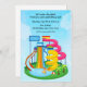 A fun invitation for a party or event at a water slide park features a colourful assortment of water slides with children playing against a blue sky background.