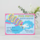 This cute pool party birthday invitation features a big water slide on a brightly coloured card and customisable text fields for your party information.