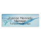 Lovely blue water themed employee name tag. Black text in three different fields is ready to personalise for your business.