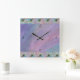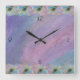 This lovely clock will make a perfect accent piece in any room with it's soft watercolor washed background in shades of purples, pinks and blues while accented at the top and bottom with golden swirls and vibrant peacock feathers. Lots of room to add initial, monogram or name to personalise.