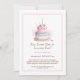 Watercolor 1st Birthday Invitation with Cake pink