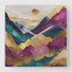 Watercolor Abstract Landscape Painting Gold Square Wall Clock