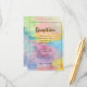 For a colourful, upbeat wedding, consider an invitation suite featuring a whimsical abstract watercolor painting in a variety of cheerful hues. The painting is the same on both sides; the front includes a dark grey thin border and your information in dark grey. Yellow, pink, purple, blue, green and turquoise shades suggest trendy, cool tie dye. The text for your personalised information is easy to customise using the text templates and edit menu. A truly unique wedding invitation suite! Whimsical, original artwork & design by Tuzi Williams.