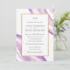 Elegant wedding invitations, featuring a faux gold foil frame and a watercolor agate design in purples.