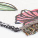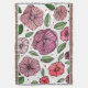 Delicate flowers and leaves made with watercolor shapes and inked details. Pink and green palette.