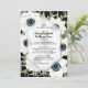 Elegant black and white anemone flowers and leaves watercolor on a black background, your wedding ceremony details in chic lettering on a transparent white diamond inset. MATCHING items in our store.