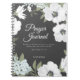 A beautiful prayer journal to write down all your requests and answers to prayer. This design features a surround of white and blue watercolor anemones and hydrangeas with green leaves, on a charcoal background. The title 'Prayer Journal' is in white script font, and the Bible verse - "Whatever things you ask in prayer, believing, you will receive." Matthew 21:22, and name personalisation, in white sans serif font. All text can be amended.