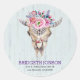 Cute watercolor animal skull with colourful flowers and buds over light bluebackground with arrows. Customisable sticker template