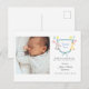 Adorable hand painted watercolor Baby animals Birth announcement Thank you postcard with baby photo .