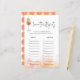 This fun summer bridal shower game has a Italian Aperol Spritz theme with citrus accents. The front illustration is a watercolor Aperol spritz with hibiscus and fruit toppings. The back is a matching watercolor orange slice pattern with a minimalist white background. It is fun and whimsical, perfect for summer cocktail bridal showers.