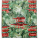 This shower curtain features a traditional Asian-style pagoda rendered in delicate watercolor strokes, set amidst a lush green landscape. The design draws inspiration from the architectural elegance found in Japan, China, Korea, and Vietnam, capturing the serene beauty of nature intertwined with cultural heritage. The harmonious blend of verdant hues and intricate details evokes a sense of tranquillity and timelessness, making it a versatile piece for various artistic applications.