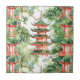 Watercolor Asian Pagoda in Verdant Landscape (9) Ceramic Tile