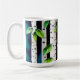 Beautiful coffee mug features a digital watercolor illustration of a grove of white aspen trees.