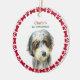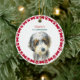 This sweet holiday ornament features a beautiful watercolor illustration of an Australian Doodle (Aussie Doodle) dog surrounded by a red wreath. of pawprints and bones. These fabulous dogs are a cross between an Australian Shepherd and a Poodle. Add your pet Doodle's name to the front and the year to the back. You can also customise the occasion and change it from "1st Christmas" to the text of your own choice.