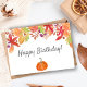 Watercolor Autumn Foliage With Pumpkin Birthday Card