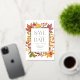 This fall save the date card features a beautiful gold foil frame paired with soft watercolor foliage in warm autumn shades like rust, amber, and olive green. The shimmering foil adds a touch of elegance and luxury, making it perfect for fall weddings with a refined style. Personalise the card with your names, wedding date, and location to share your special news in a memorable way. The design balances classic sophistication with cosy seasonal details, creating a stunning first impression. It’s a great choice for couples looking to announce their wedding with warmth and class.