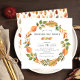 This Friendsgiving invitation features a beautiful watercolor autumn leaves wreath, making it perfect for a festive holiday gathering. The invitation is simple and elegant, with a white background and black text. The watercolor autumn leaves wreath adds a touch of whimsy and fun, and the overall design is perfect for celebrating the Thanksgiving holiday with your friends. Whether you're planning a small and intimate gathering or a large and lively celebration, this friendsgiving invitation is the perfect way to set the tone for your special day.
