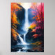 Watercolor autumn waterfall painting poster