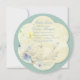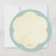 A unique baby shower invitation featuring a watercolor little bird on a branch. The overall flower shape is layered onto a blue-green background.