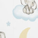 Watercolor baby elephant on clouds with stars and sleepy moon in soft muted colours for baby boy nursery fabric and wallpaper.