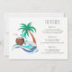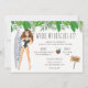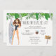 Tropical bachelorette beach party weekend invitation features watercolor girl with surf board. Event details on back of invitation. Can be customised for any event.