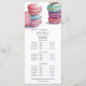 A baker, pastry chef, cake maker menu price list in a cute watercolor style with luscious macaron cookies. Customise this menu card with your own categories, baked goods items and prices. Simply delete categories or lines of text that you don't need. You may also use the simple design tool to change fonts.
