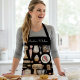 Delight the cook in your house with this personalized apron, featuring a pattern of watercolor baking tools, such as standing mixers, rolling pins and pastry tubes, on a black background. Near the top, the words "[Your Name's] Kitchen" or other text of your choice appear in editable handwriting script.