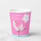 Watercolor whimsy swan personalised name and age birthday party pink paper cup. Personalise with your own name and age, reads Happy birthday Madison 8. Pretty shades of pink, aqua blue, and white. Other matching dancing ballerina swan items are available. An original design and whimsy swan uniquely painted in watercolor by Sarah Trett for www.mylittleeden.com.