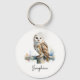 Watercolor Barn Owl Elegant Personalized Name Key Ring
