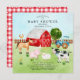 Adorable farm animals baby shower invitation featuring a horse, pig, sheep cow, ducks, chickens and roaster for a girls, boys or neutral baby shower.