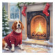 Watercolor Basset Hound Cozy Fireplace Christmas Poster