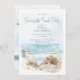 Plan a bachelorette beach party with this editable watercolor beach scene invitation featuring serene blues and a party spread of goodies and drinks. The type is the colour of the sea and the back of the invitation includes the party goers sitting on the beach. A perfect style for a fun day in the sun.