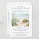 With every stroke of the brush, the invitation captures the essence of carefree days and endless possibilities, setting the stage for a bachelorette party filled with laughter, love, and the timeless beauty of the sea, with it's beach scene featuring footsteps in the sand leading to the beach and ocean. The delicate typography is in a handwritten script with azure blue colours of the ocean. Enjoy some bachelorette beach bliss with your friends, before your special day comes.