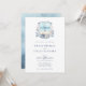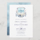 This elegant coastal wedding invitation features a watercolor beach wedding crest with monogram initials of the bride and groom, and the wedding date on the banner of the crest.