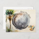 Watercolor beach save the date card with flip flops and a palm trees. Add a photo of the couple!