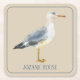 These coastal inspired square paper coasters feature a beautiful watercolor seagull in soft shades of blue and grey on a background of sand beige. Personalize with your choice of name or special text.