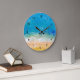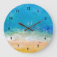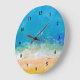 A tropical watercolor of a beach with crashing waves as a unique wall clock. Watercolor by Daphsam.