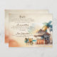 Elegant watercolor wedding enclosure cards in moody vintage tones with people and a bar shack and palm tree.