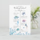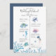 Set the tone for your celebration with this modern wedding timeline and beach itinerary, perfect for a destination bachelorette weekend or seaside wedding. This stylish wedding schedule invitation features vibrant watercolor illustrations of marine life—octopus, starfish, jellyfish, sea turtle, lionfish, seahorse, and coral—all in striking shades of marine blue.