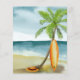 Baby on Board! Baby shower invitation - perfect for a summer baby shower. Beach theme. Watercolor design has a ocean and beach scene with surfboard, palm tree and summer hat.